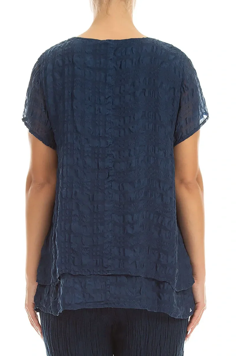 Лёгкая блуза из 100% шёлка Гризас тёмно-синего цвета - Grizas Layered White Light Silk Blouse 5571-S19 620 navy. Выполнена из тонкого полупрозрачного материала в два слоя на основной части изделия. Нижний слой выглядывает из-под верхнего, создавая оригинальный богемный стиль. Короткие рукава - однослойные. Полукруглый вырез горловины.