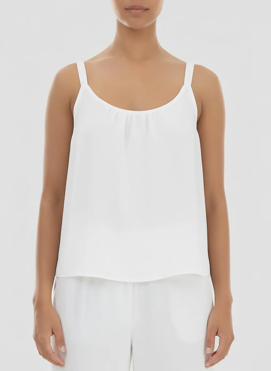 Лёгкий топ из батиста Grizas белого цвета - Grizas 52756-K34 151 white. Выполнен из натурального 100% хлопка, тонкая батистовая фактура. Ткань мягкая, воздушная, легко драпируется. Двуслойная конструкция. Широкая полукруглая горловина, с лёгкой сборкой, узкие бретели. Свободный силуэт, расширяющийся к низу.