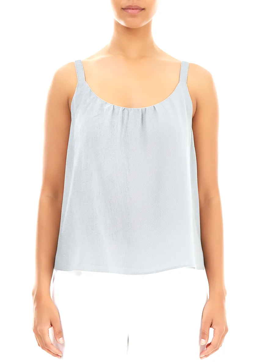 Лёгкий топ из батиста Grizas светло-серого цвета - Grizas 52756-K34 625 silver grey. Выполнен из натурального 100% хлопка, тонкая батистовая фактура. Ткань мягкая, воздушная, легко драпируется. Двуслойная конструкция. Широкая полукруглая горловина, с лёгкой сборкой, узкие бретели. Свободный силуэт, расширяющийся к низу.