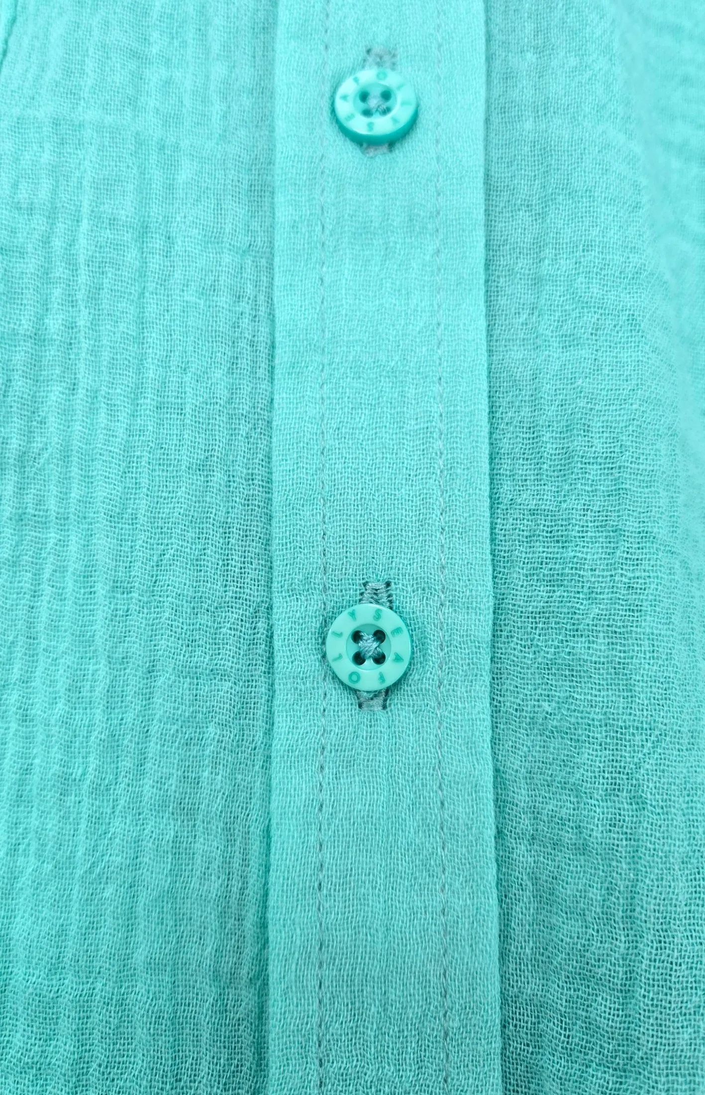 Рубашка из хлопка-жатки Сифолли Кринкли светло-изумрудного цвета - Seafolly Crinkle Breeze Beach Shirt 55428-TO - aquatic blue. 100% хлопок - муслин. Выполнена из жатого, лёгкого, дышащего материала.