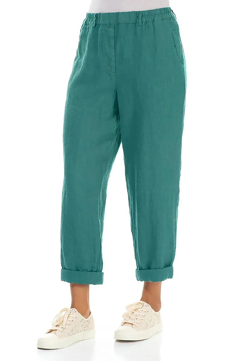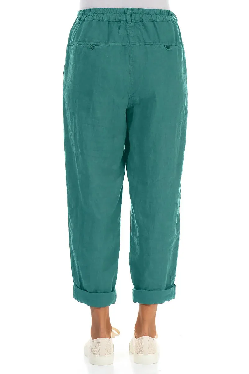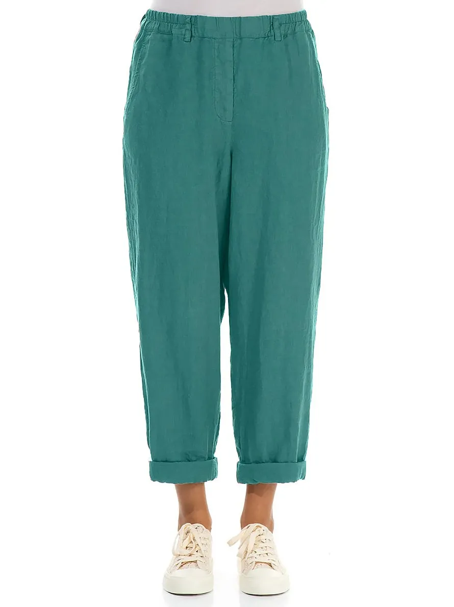 Брюки из умягченного льна с отворотом Гризас бирюзового цвета - Grizas Roll Up Truffle Linen Trousers 3713-L532 605 turquoise.