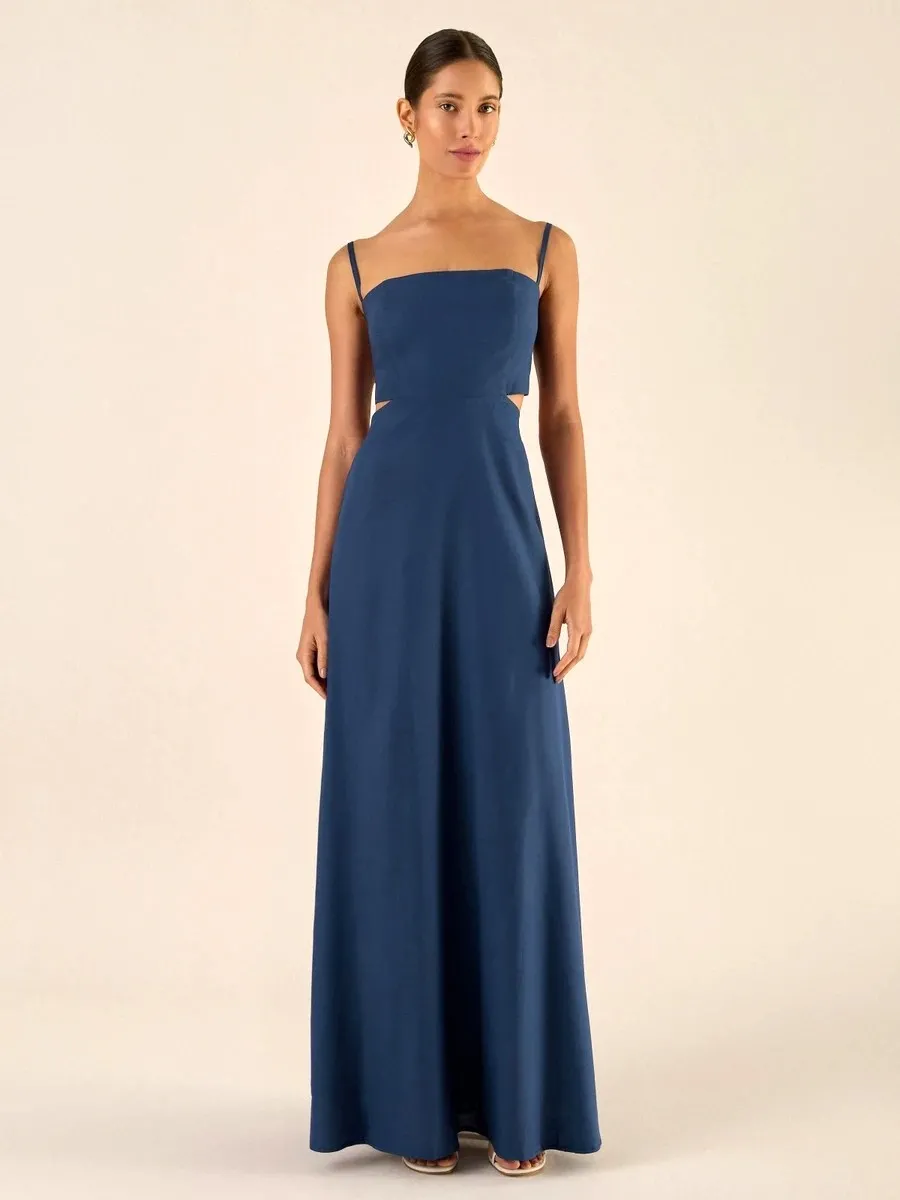 Плотный текстильный материал: 85% вискоза, 15% лён. Верх платья с открытыми плечами и узкими, широко расставленными бретелями. Бретели с регулировкой длины. Топ сзади на широкой эластичной резинке - хорошо облегает фигуру. По бокам эффектные вырезы. Пояс юбки эластичный. Платье подходит для лета и для особых случаев, когда Вы хотите создать изысканный образ, полный очарования.