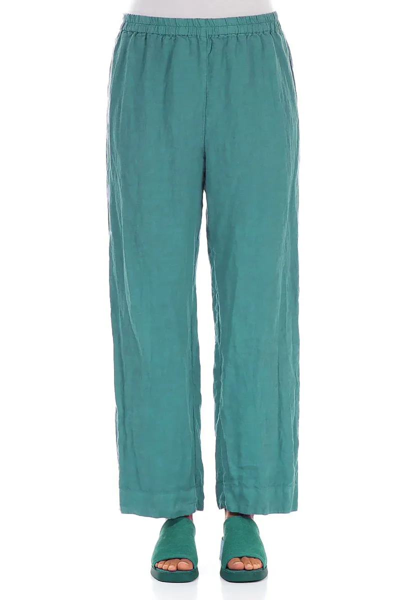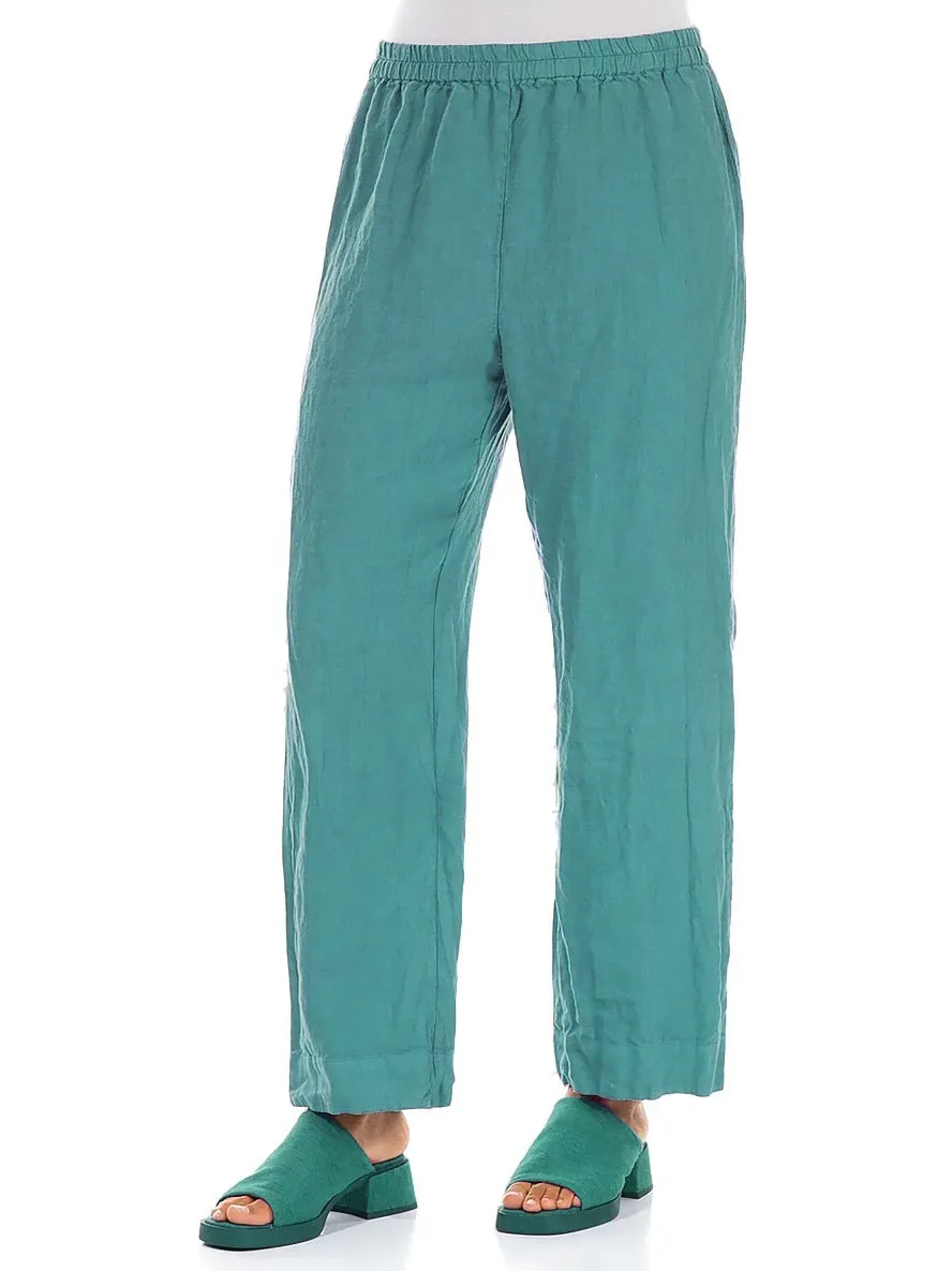 Прямые брюки из умягченного льна Гризас бирюзового цвета - Grizas Straight Linen Trousers 3813/2-L532 605 turquoise.