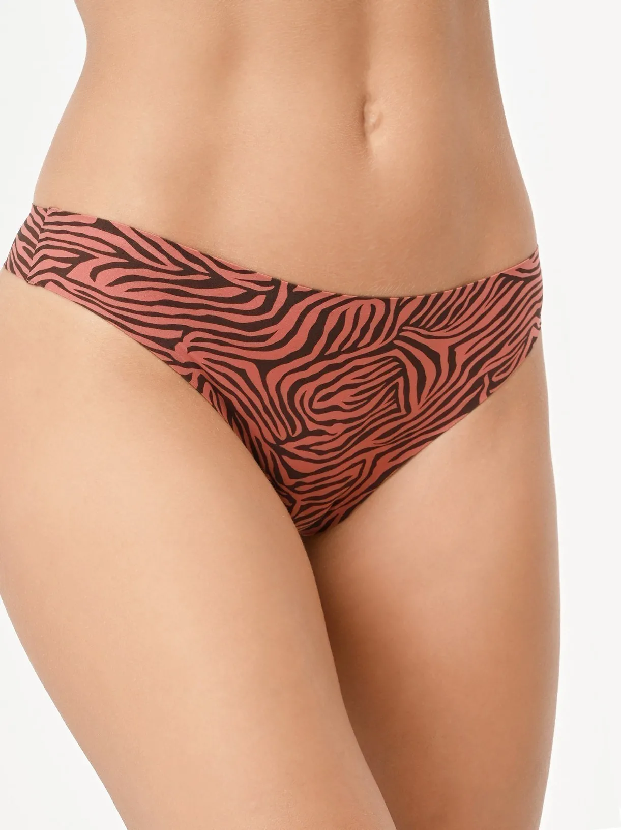 Бесшовные трусы танга универсального размера Шантель Софт Стрейч с принтом зебра в черно-оранжевых цветах - Chantelle Soft stretch 11D9 08X Safari chic. Подойдут для размеров 44-50. За короткий период эта линия стала одной из самых продаваемых у Шантель.