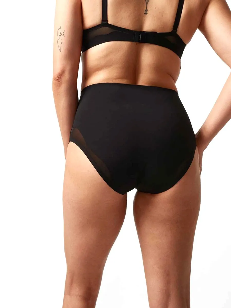 Бесшовные высокие трусы Шантель Пуэ Лайт черного цвета, с эффектом второй кожи - Chantelle Pure Light High-Waisted Support Full Brief - C10M80 / 10M8 011. Высокая линия талии сглаживает животик. Трусы выполнены из тонкого, дышащего материала. Плоская отделка и швы делают белье незаметным под тонкой одеждой.