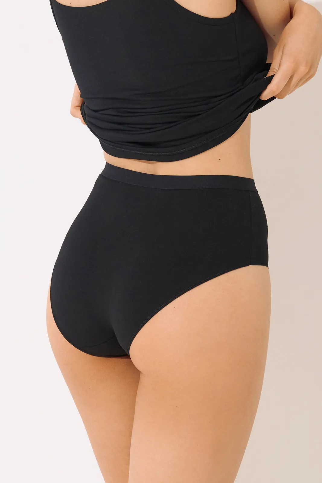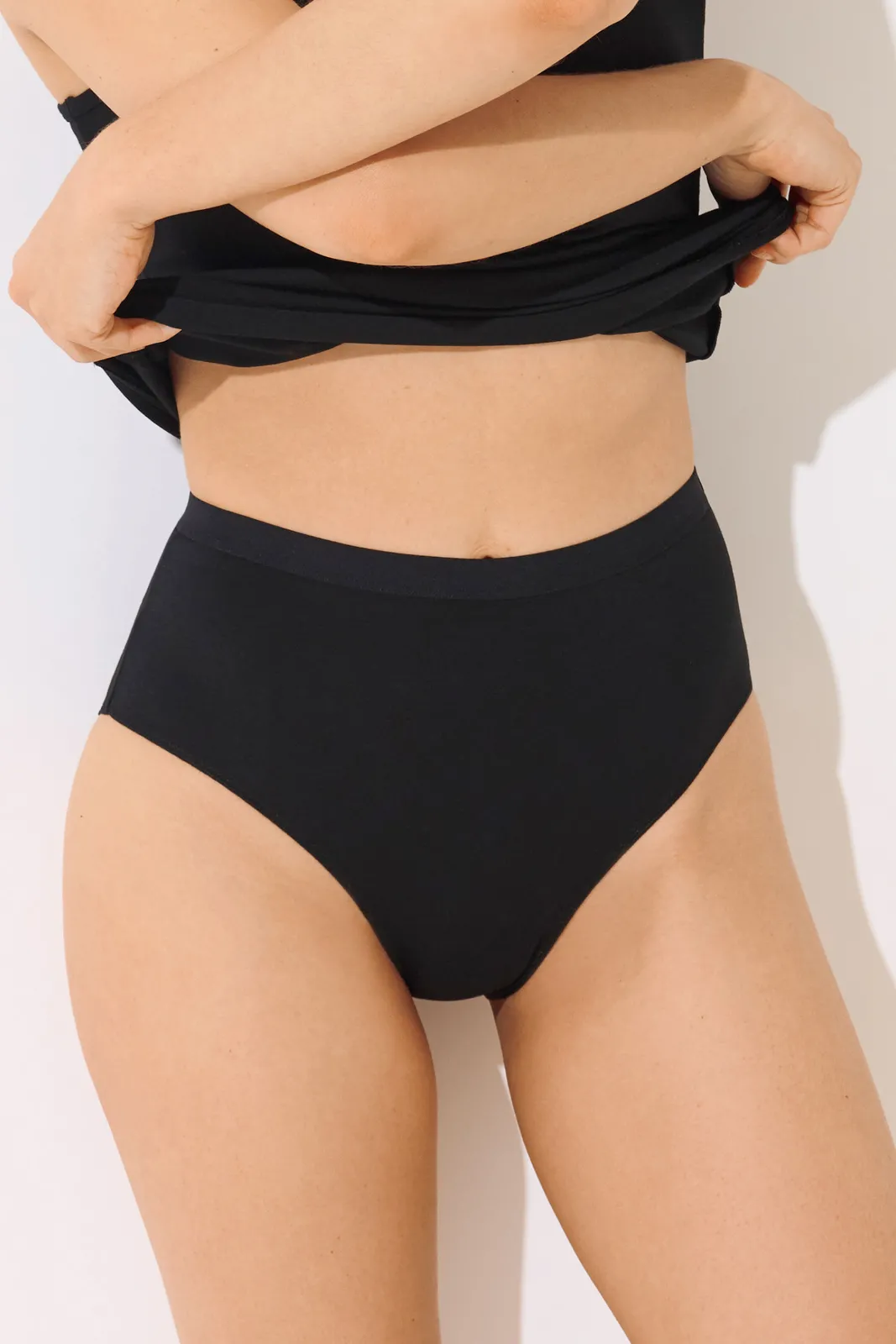 Высокие трусы из хлопка Лиска Кайя чёрного цвета - Lisca Kaia 022282. Завышенная линия талии закрывает живот, по краю талии проходит широкий эластичный, тонкий пояс. Швы плоские и деликатные.