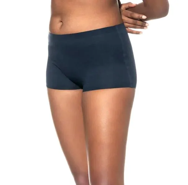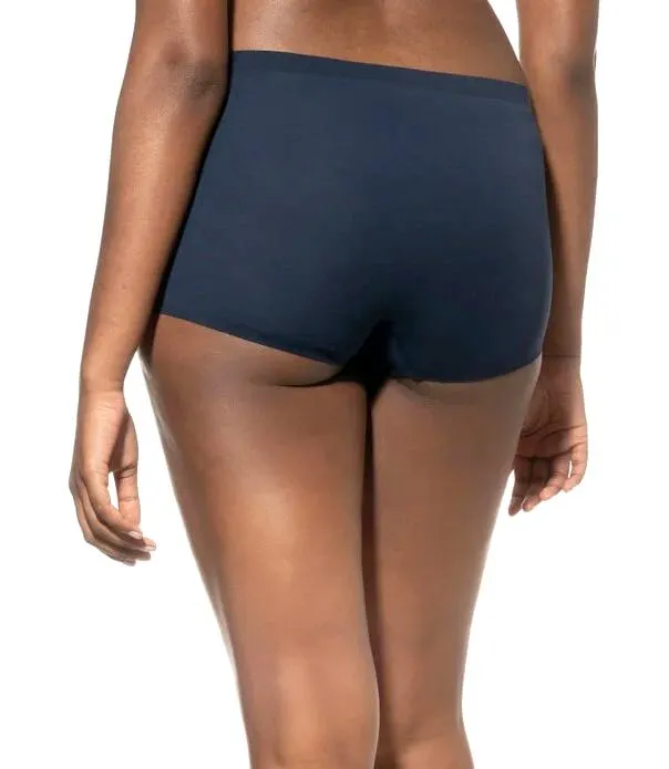Трусы-шорты Мей Секонд Ми тёмно-синего цвета - Mey Natural Second Me Shorts 79529 - 408 Night Blue. Выполнены из натурального комфортного материала: 90% хлопок, 10% эластан. Ластовица из 100% хлопка, удобно вшита в изделие. Гладкая фактура, эластичная окантовка по линии талии и вырезу ног. Трусики с плоским боковым бесшовным соединением и бесшовной уплотненной окантовкой по краю изделия - создают гладкий силуэт. Благодаря эластичности легко подобрать размер. Заниженная линия талии и полностью закрытые ягодицы, с короткими брючинами. Трусики широкие по бокам. Без центрального шва сзади.