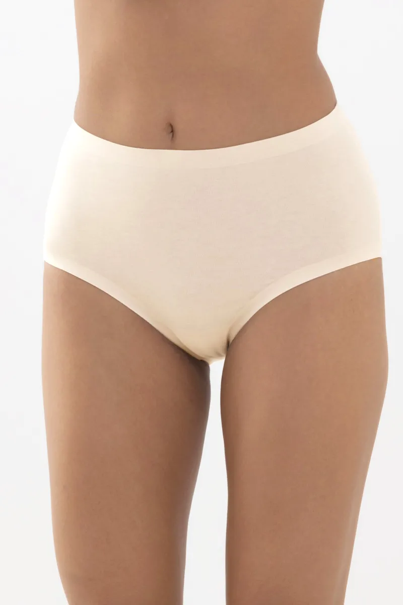 Высокие трусы Мей Секонд Ми нежно-бежевого цвета жемчуг - Mey Natural Second Me Taillen Slip 79528 - 254 new pearl. Выполнены из натурального комфортного материала: 90% хлопок, 10% эластан. Ластовица из 100% хлопка. Гладкая фактура, эластичная окантовка по линии талии и вырезу ног. Трусики с плоским боковым бесшовным соединением и бесшовной уплотненной окантовкой по краю изделия - создают гладкий силуэт. Благодаря эластичности легко подобрать размер. Завышенная линия талии закрывает животик и сглаживает бёдра. Трусики широкие по бокам.