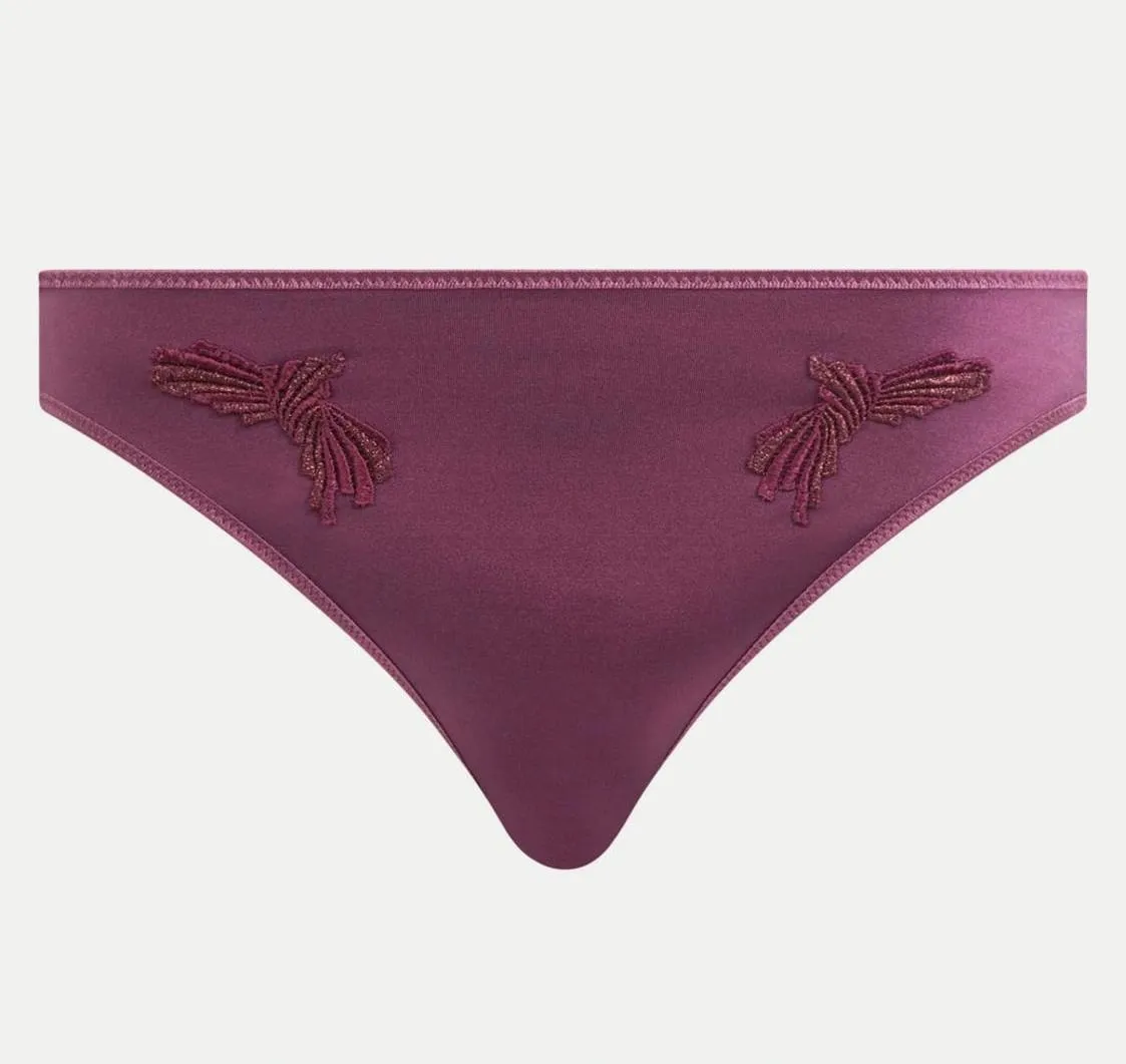 Классические трусы-слип Шантель Гедона темно-бордового, винного цвета танин - Chantelle Hedona Slip 2033 / 20330 Tannin 01Y. Идеально подходят к бюстгальтеру Chantelle Hedona. Выполнены из гладкого, непрозрачного материала с сатиновой фактурой. Хлопковая ластовица. Край трусиков обработан эластичной окантовкой. Впереди украшены кружевной цветочной аппликацией, которая прекрасно гармонирует с бюстгальтером Chantelle Hedona или любой другой гладкой моделью.