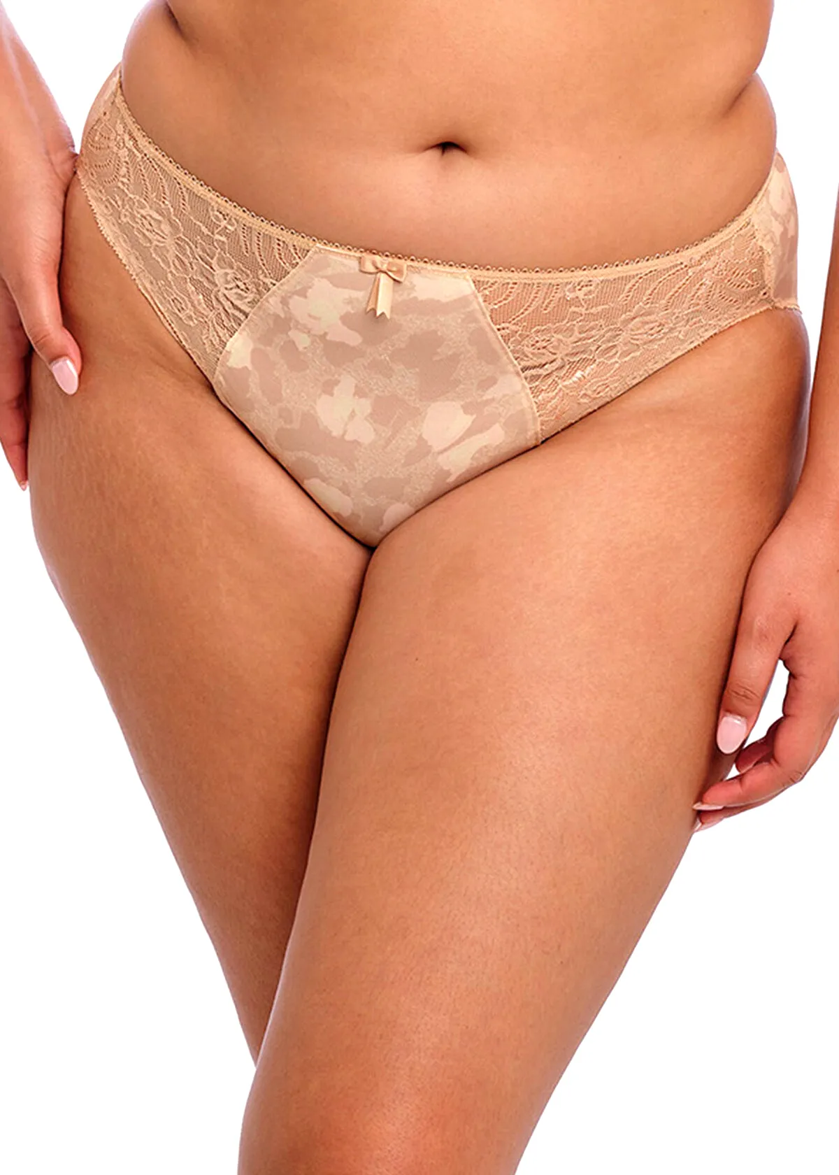 Классические трусы большого размера Эломи Морган с нежным абстрактным принтом в оттенках бежевого и вставками из нежного, эластичного кружева - Elomi Morgan Brief 4115 - TOASTED ALMOND TOD