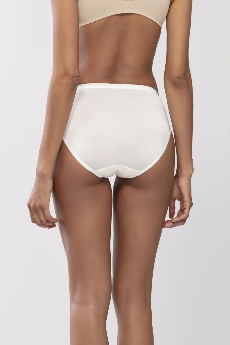 Классические трусы бриф с высокой посадкой Мэй Лайтс ванильно-бежевого цвета - Mey Lights Basic jazz pants 89200 - 20 pearl white.55% высококачественный перуанский хлопок, 40% вискоза, 5% эластан, ластовица - 100% хлопок. Завышенная линия талии сглаживает линию живота и бедер. По поясу - эластичный пояс-резинка средней ширины. По вырезу ног - узкая, эластичная окантовка. Швы в изделиях Mey очень мелкие, за счет чего достигается особая прочность и эластичность шва.