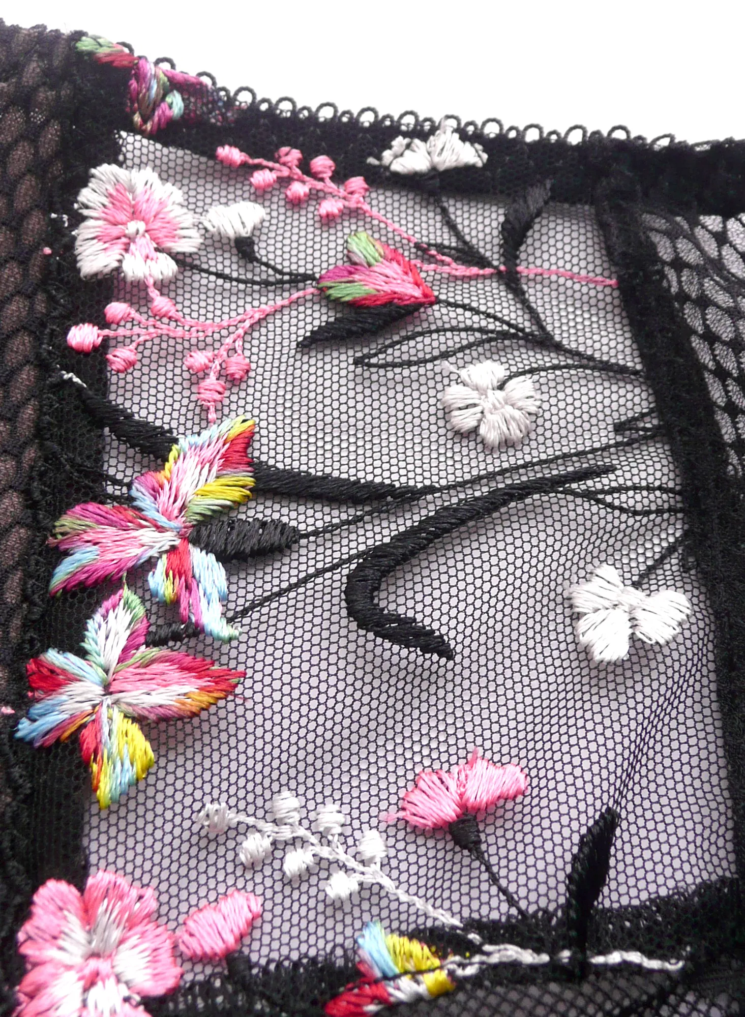 Черные кружевные трусы большого размера Эломи Чарли. С игривой прозрачной сеточкой сзади и красивыми аппликациями вышитого кружева. 30% хлопка в составе.