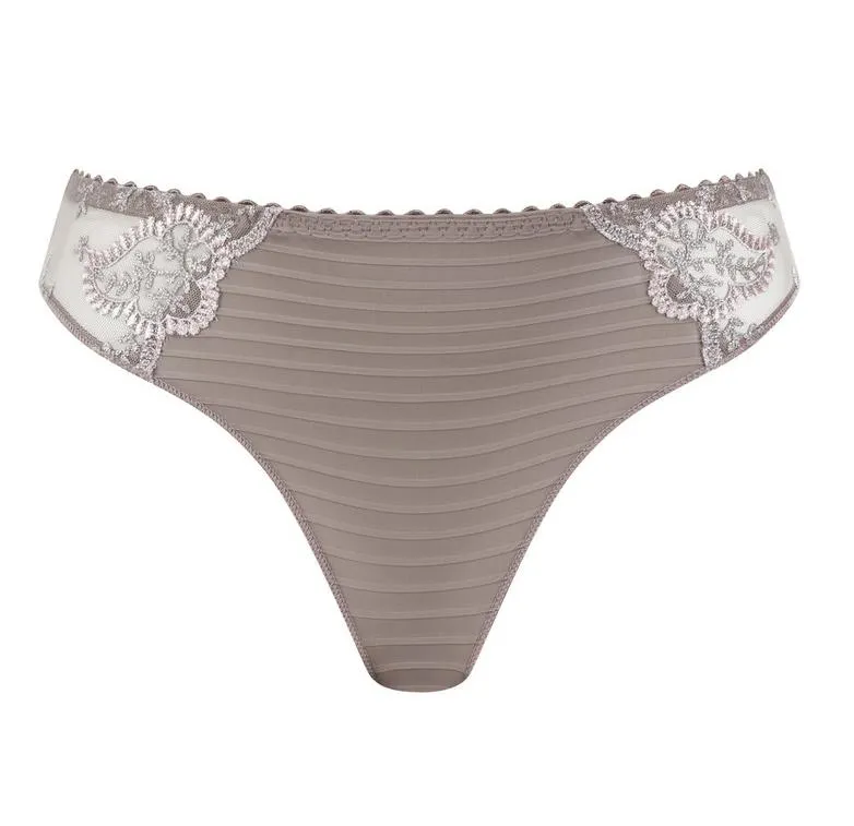 Классические трусы-бриф Луиза Брак Элис тёмно-бежевого цвета тауп - Louisa Bracq Elise rio brief baiser 419 30 TPE taupe. Впереди текстурированная ткань в рубчик сочетается со вставками из прозрачного кружева с вышивкой. Сзади - гладкая матовая ткань и вышитый логотип LB. Линия талии и вырез ног с эластичной окантовкой.
