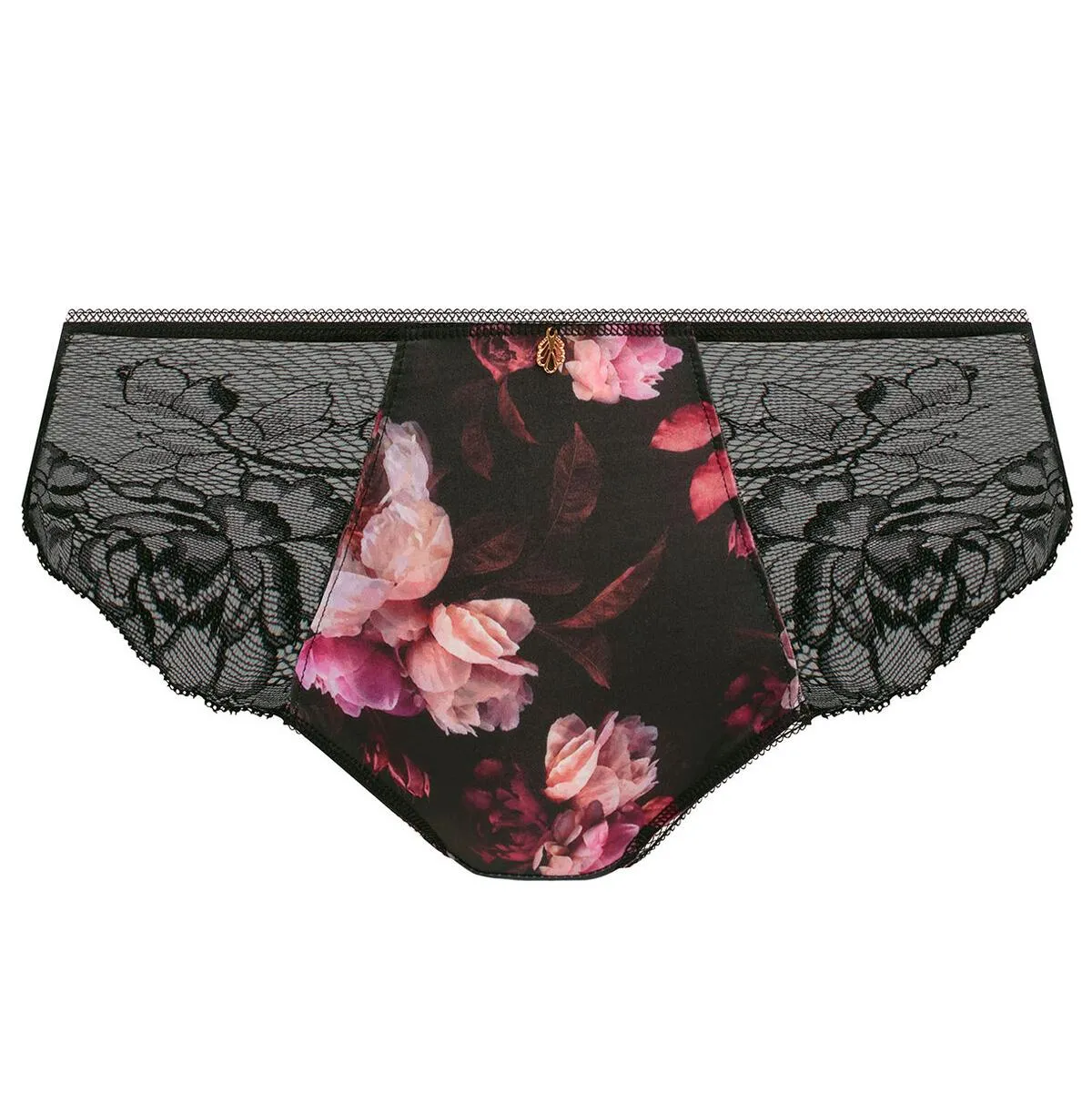 Кружевные трусы-бриф Фэнтези Пиппа с вставками из тончайшего швейцарского кружева впереди, сзади выполнены из непрозрачной матовой ткани - Fantasie Pippa Brief 100750 BLK. Винтажный принт - красные розы на чёрном фоне.