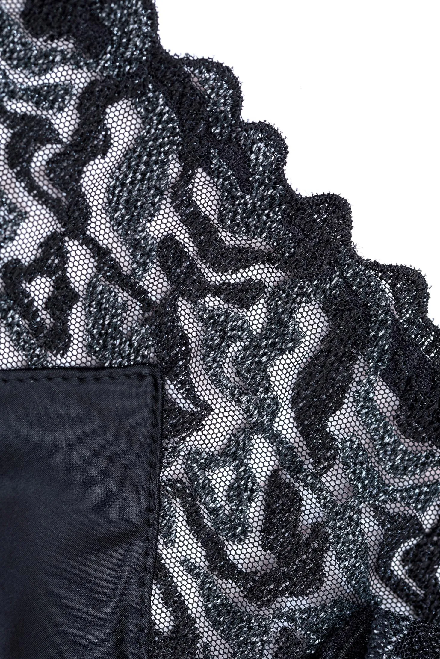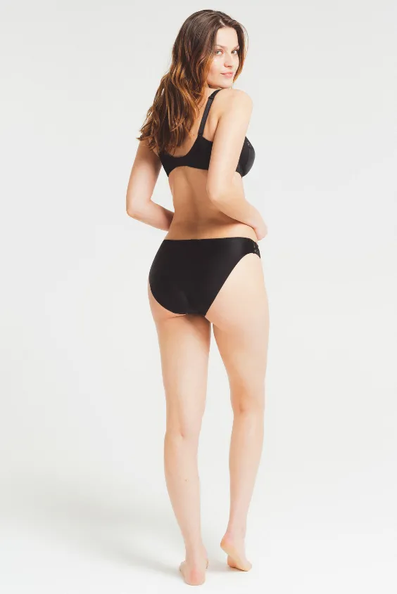 Трусы-слип Луиза Брак Электрик чёрного цвета - Louisa Bracq Electric Waves 494 30 Slip NRO noir. Красивая мерцающая вышивка, абстрактные мотивы. Впереди - шелковистая непрозрачная ткань с кружевными полупрозрачными вставками. Сзади - полностью непрозрачные. Линия талии обработана узкой эластичной окантовкой.