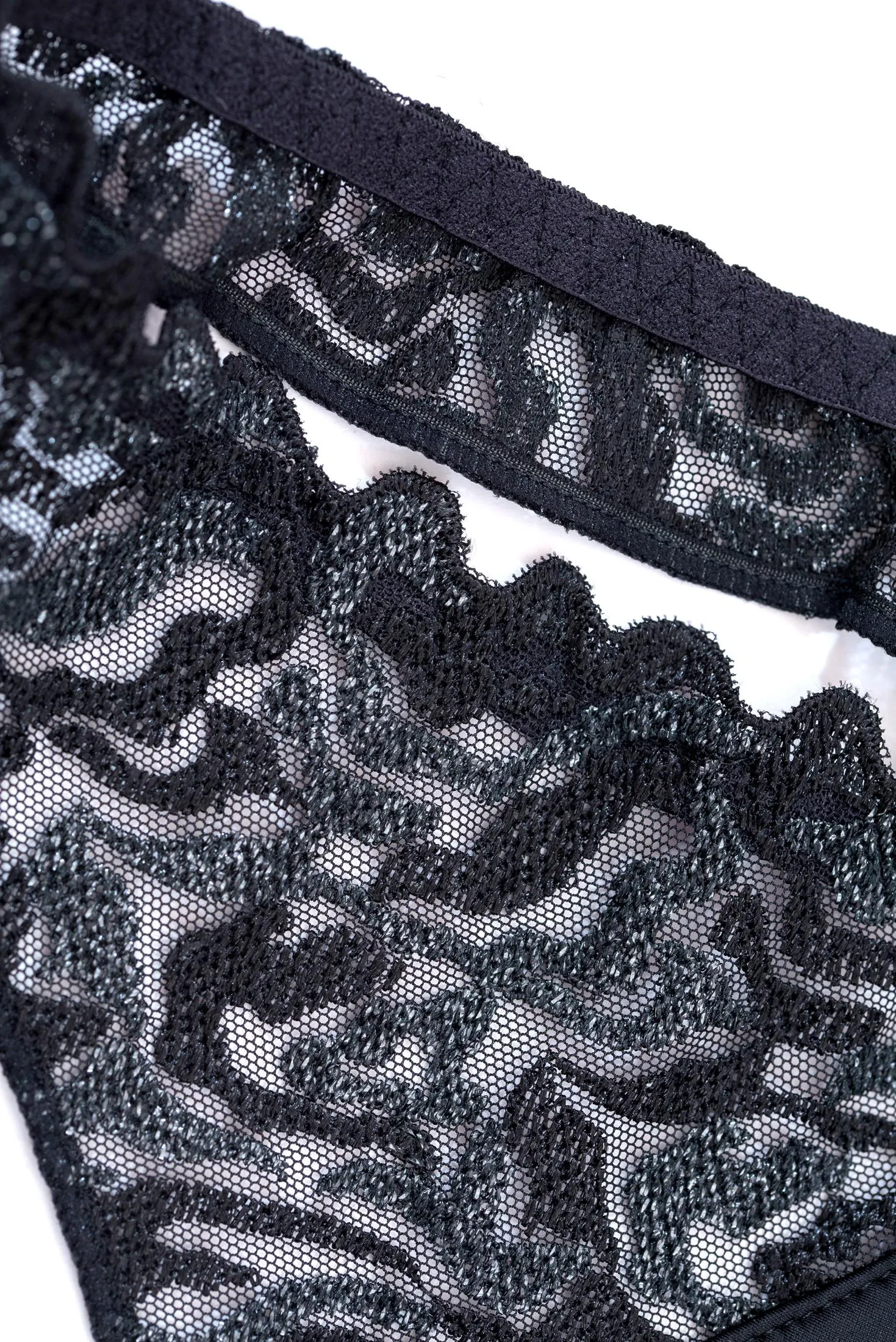 Трусы-стринги Луиза Брак Электрик чёрного цвета - Louisa Bracq Electric Waves 494 60 String NRO noir. Красивая мерцающая вышивка, абстрактные мотивы.