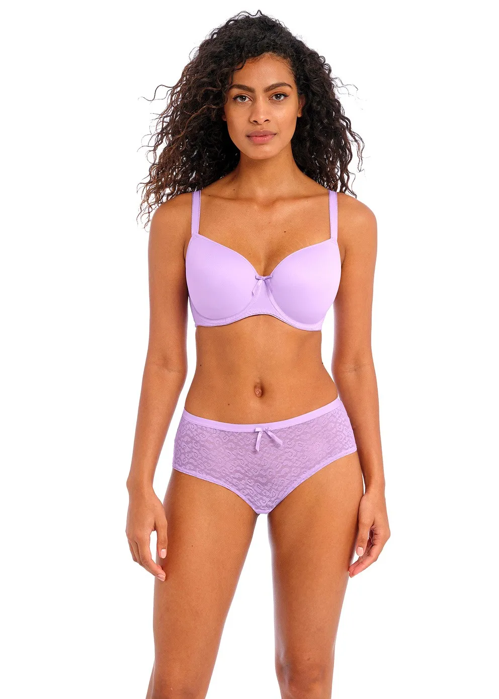 Кружевные полупрозрачные трусики-шортики Фрея Fancies светло-фиолетового, лилового цвета, с заниженной талией - Freya Fancies Hipster Short 1015 Purple Rose PPR