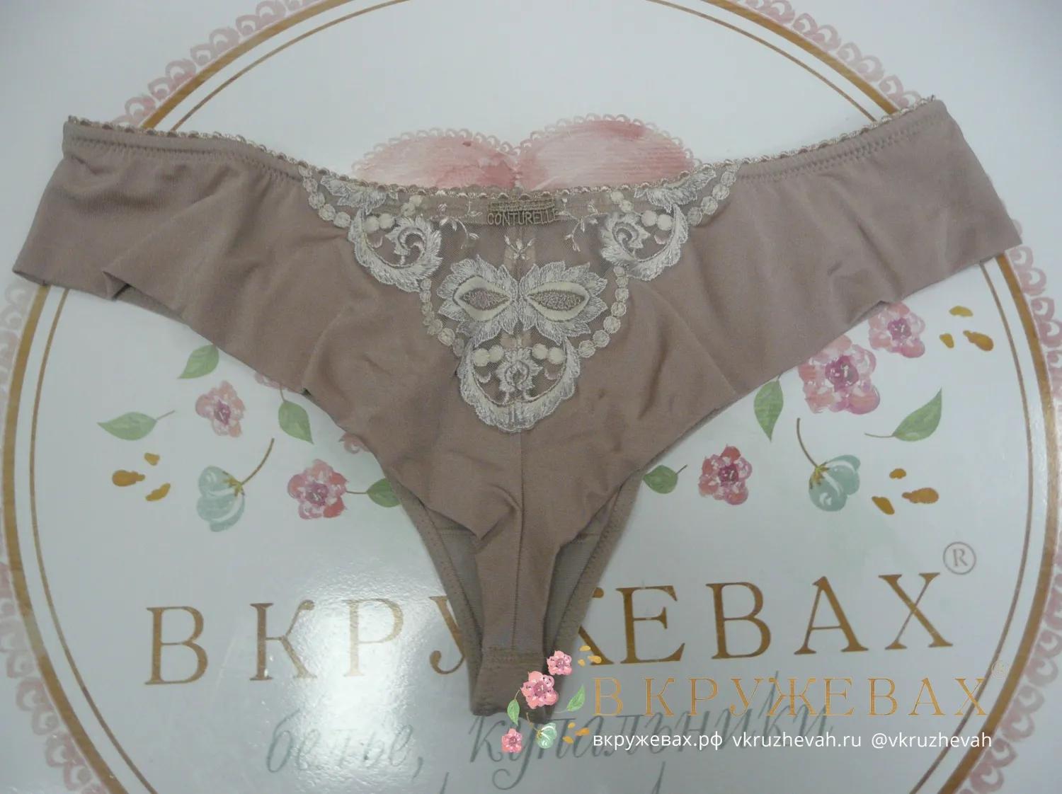 Трусы стринг из самой продаваемой линии Фелина Контюрель Прованс в нежно-коричневом цвете светлый тауп. Эффектный кружевной треугольник сзади.