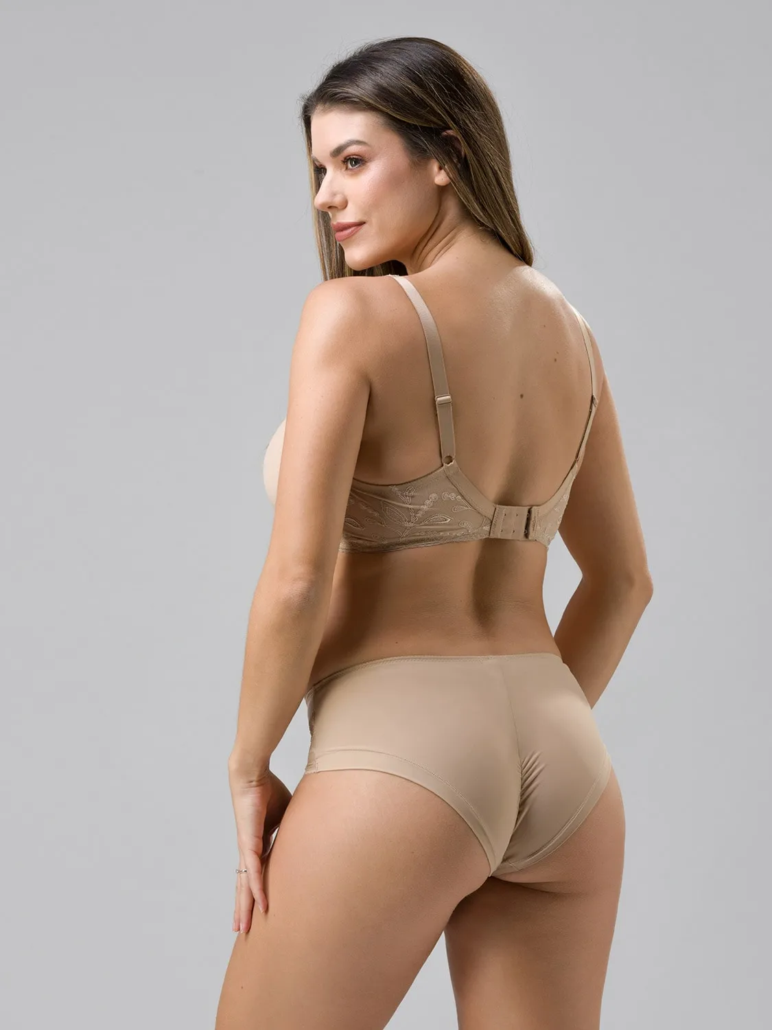 Классические трусики-бриф Luna Splendida Selebration hipster 2964 13 beige. Впереди вставки из полупрозрачной вышитой сеточки. По центру - матовая подложка, скрывающая тело. Сзади трусики выполнены из шелковистой, гладкой ткани. Центральный шов сзади обеспечивает хорошую посадку. Вырез ног обработан широкой окантовкой края с плоскими швами.