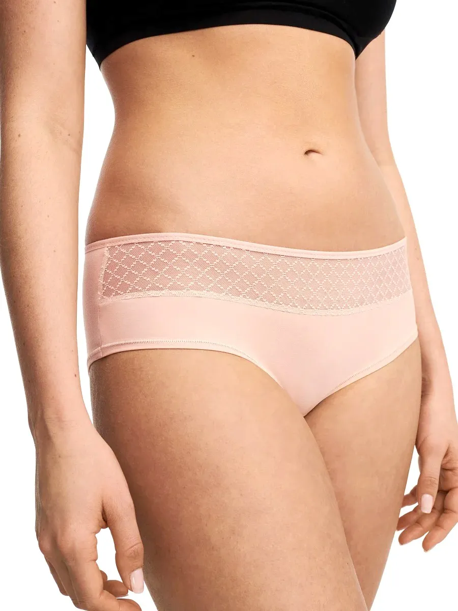 Трусы-шорты Шантель Нора Шик нежно-розового цвета - Chantelle Norah Chic Shorty C16M40 - 0RG soft pink. Идеально подходят к бюстгальтеру Norah Chic. Широкий бок, эластичная окантовка по линии талии и вырезу ног. Впереди - вставка из текстурной жаккардовой сеточки с геометрическими мотивами. Хлопковая ластовица.