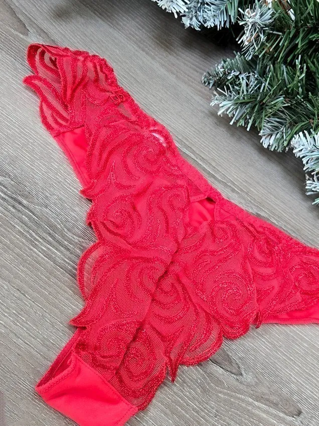 Трусы-танга Луиза Брак Трайбл ярко-красного цвета Гибискус - Louisa Bracq Tribal tanga 484 65 HBC hibiscus. Впереди выполнены из однотонного шелковистого материала, сзади - роскошное полупрозрачное кружево. Мотивы кружева имитируют татуировку, романтичные завитки. Эластичная окантовка по линии талии. Хлопковая ластовица.