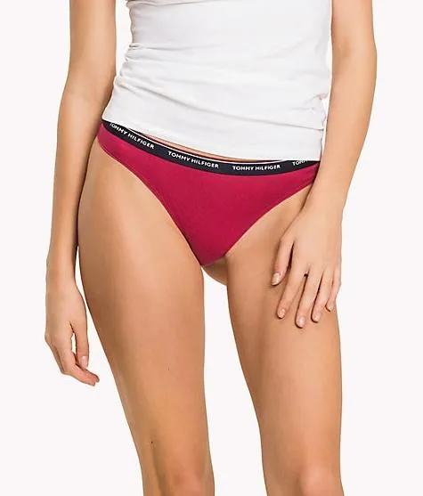 Трусы-танга Томми Хилфигер в упаковке из 3 шт (цена за упаковку) - отличная базовая модель на каждый день, 90% хлопка. Цвет красный, темно-серый, синий. Фирменный черный пояс-резинка с логотипом бренда