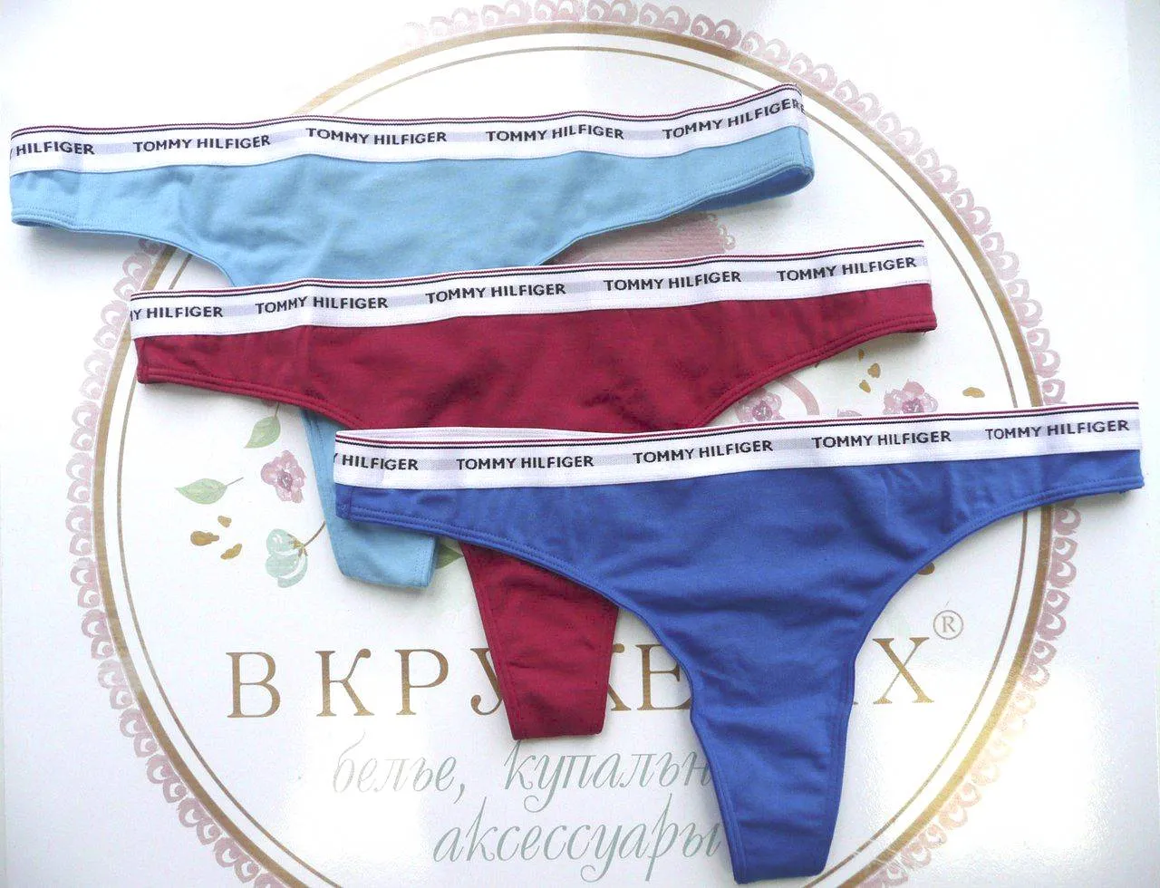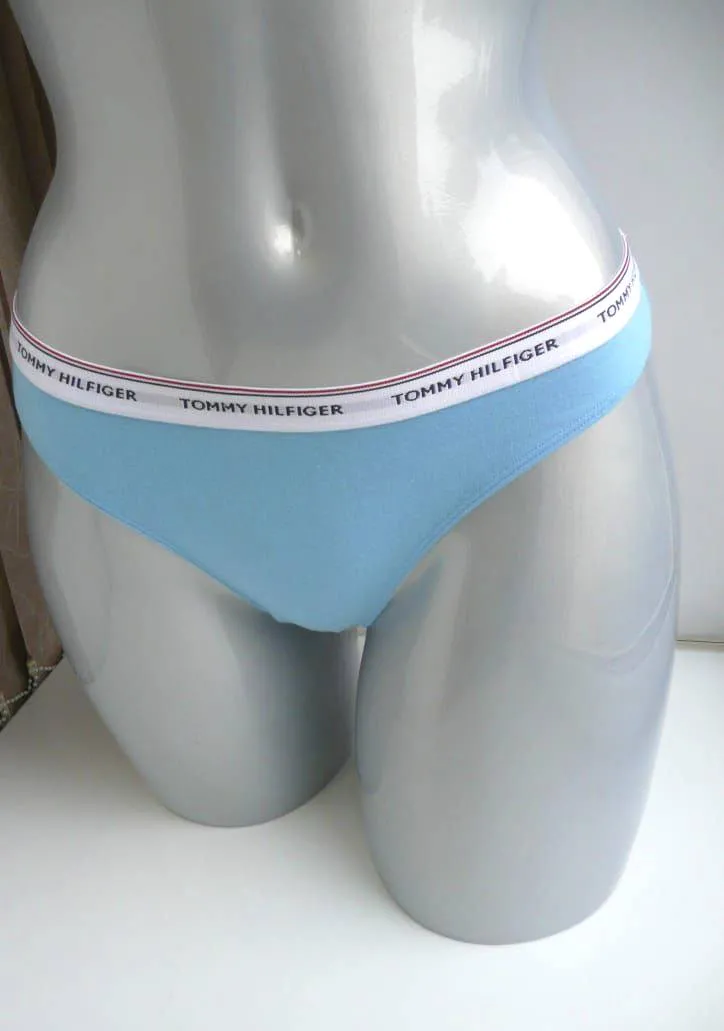 Трусы-танга Томми Хилфигер в упаковке из 3 шт (цена за упаковку) - отличная базовая модель на каждый день, 90% хлопка. Цвет красный, голубой, синий. Фирменный черный пояс-резинка с логотипом бренда