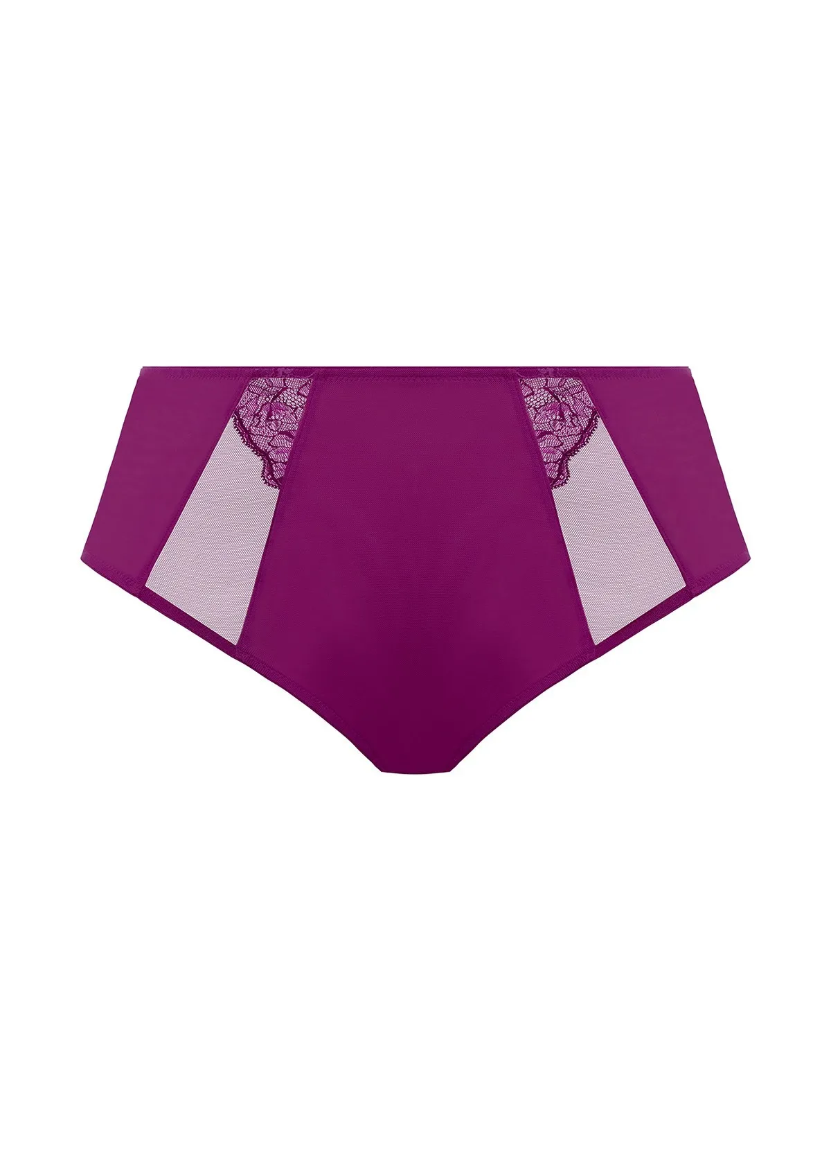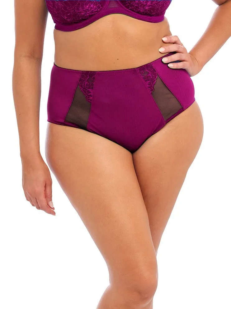 Высокие трусы Эломи Брианна бордового цвета - Elomi Brianna Full Brief 8085 BLY blackberry. Выполнены из двухслойной сеточки. Эффектные полупрозрачные вставки и аппликации из эластичного кружева.