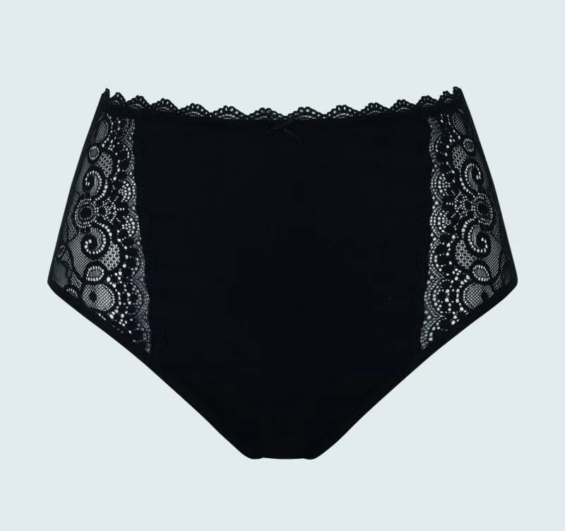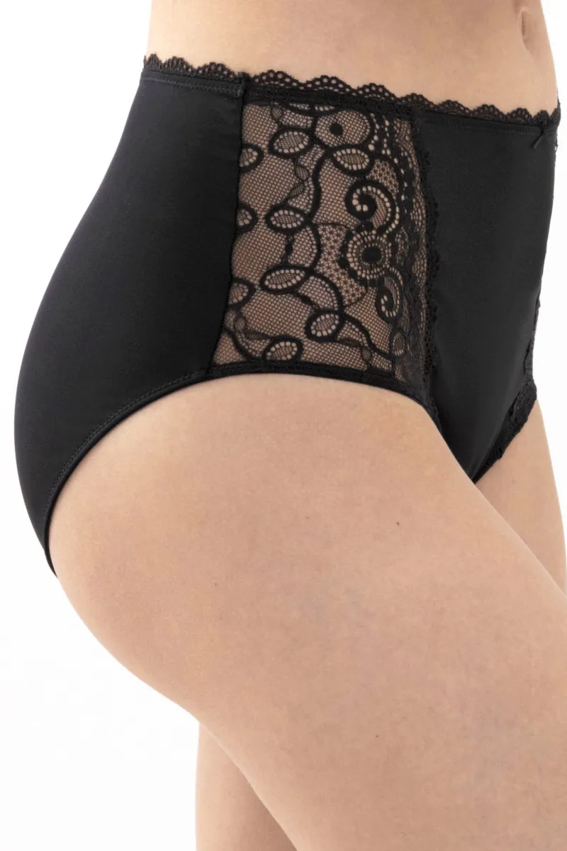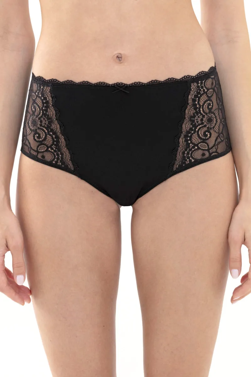Высокие трусы Мей Амур чёрного цвета - Mey Amorous taillen slip 79804 3 Schwarz. Ластовица из 100% хлопка. Выполнены из тонкой непрозрачной ткани с полупрозрачными кружевными вставками по бокам. Завышенная талия закрывает живот. По линии талии проходит узкая эластичная окантовка и кружевная оборка, эластичная обработка выреза ног. Изделие соответствует сертификату Oeko-Tex-Standard 100 - ткань выполнена из экологичных и безопасных материалов.