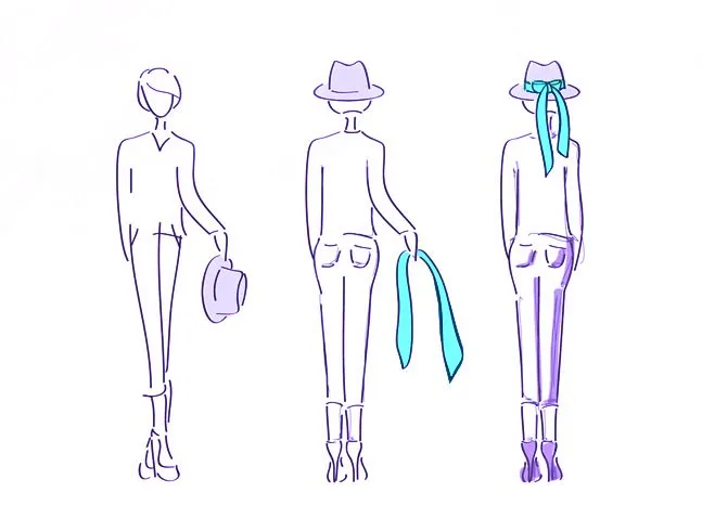 Берем платок 90х90 и складываем так, как описано выше, чтобы получилась многослойная лента-пояс. Обвязываем платок вокруг нашей шляпки. Кстати, в ассортименте Roeckl можно выбрать очень стильные шляпы с широкими полями.