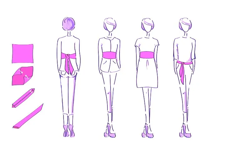 В качестве пояса красиво смотрятся платки с традиционными этническими орнаментами, сложными рисунками. Универсальным решением может стать однотонный платок или длинный шарф. Особый шарм добавит шелковистая бахрома или кисточки.