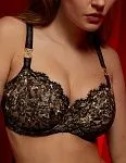 Роскошное сочетание черного кружева с золотом, необычные декоративные элементы и фурнитура, эклектичное наложение переливающейся вышивки на полупрозрачное кружево, реснички по краю – все это создает особое настроение в новой линии Arau.